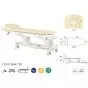 The Hydraulic Massage Table in 2 parts Ecopostural C5743 has an hydraulic height adjustment operated by foot pump. Its steel frame with white epoxy powder coating heated at 250º is equiped with a frontal piece with high resistance polypropylene curved feet and a lateral piece.
