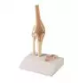 Knee joint. These joint model in about ½ life size shows the structures of the joint as well as the major ligaments. The inner structures can be explained with the cross section mounted on the base of the model.