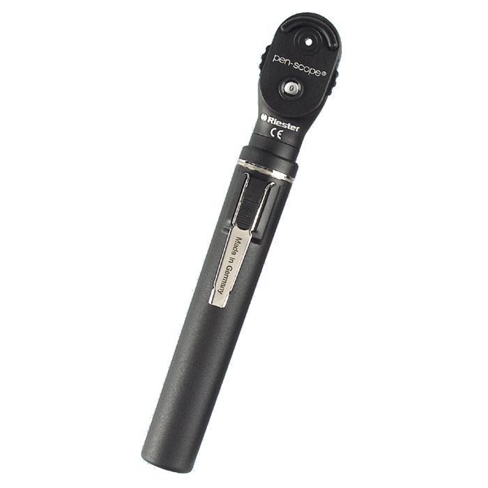 Ophtalmoscope Riester Pen-Scope - Vacuum 2.7V light - Provided with four apertures, without red open filter - Light can easily be replaced on the lower side of the instrument's head
