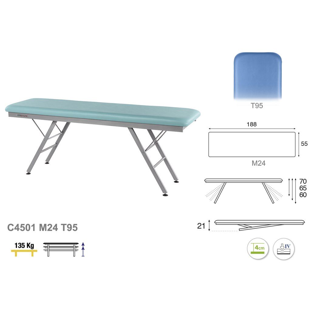The Stationary Massage Table Ecopostural C4501 can support a maximum weight of 135kg and its vertical height can be at 60 - 65 - 70cm.