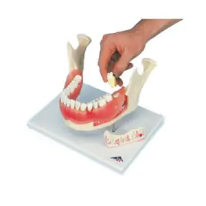 This twice enlarged diseased dental model in 21 parts has been designed from real human mandibule.